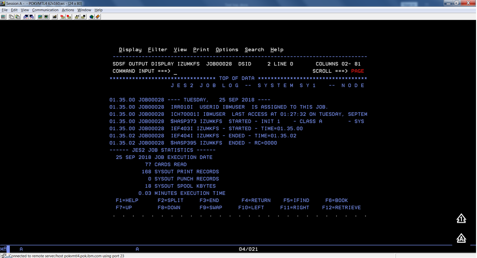 To verify, check the results of the job execution in the job log. For example, you can use SDSF to examine the job log: